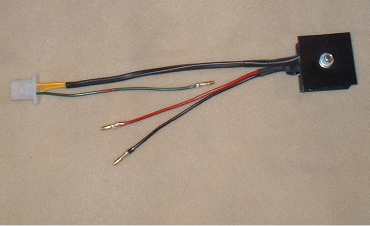 Note the stand-alone green wire on the plug. That will go to the new regulator as the field-coil control wire. The separate regulator appears to have blade terminals, so you will have to splice a section of green wire to mate up the two.