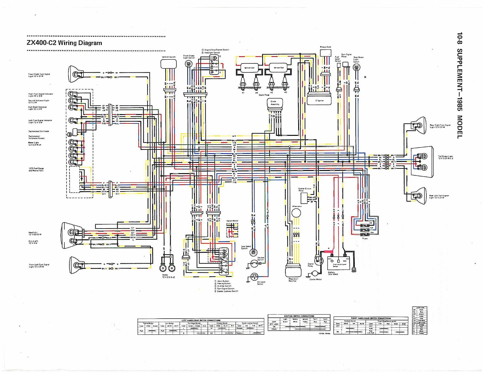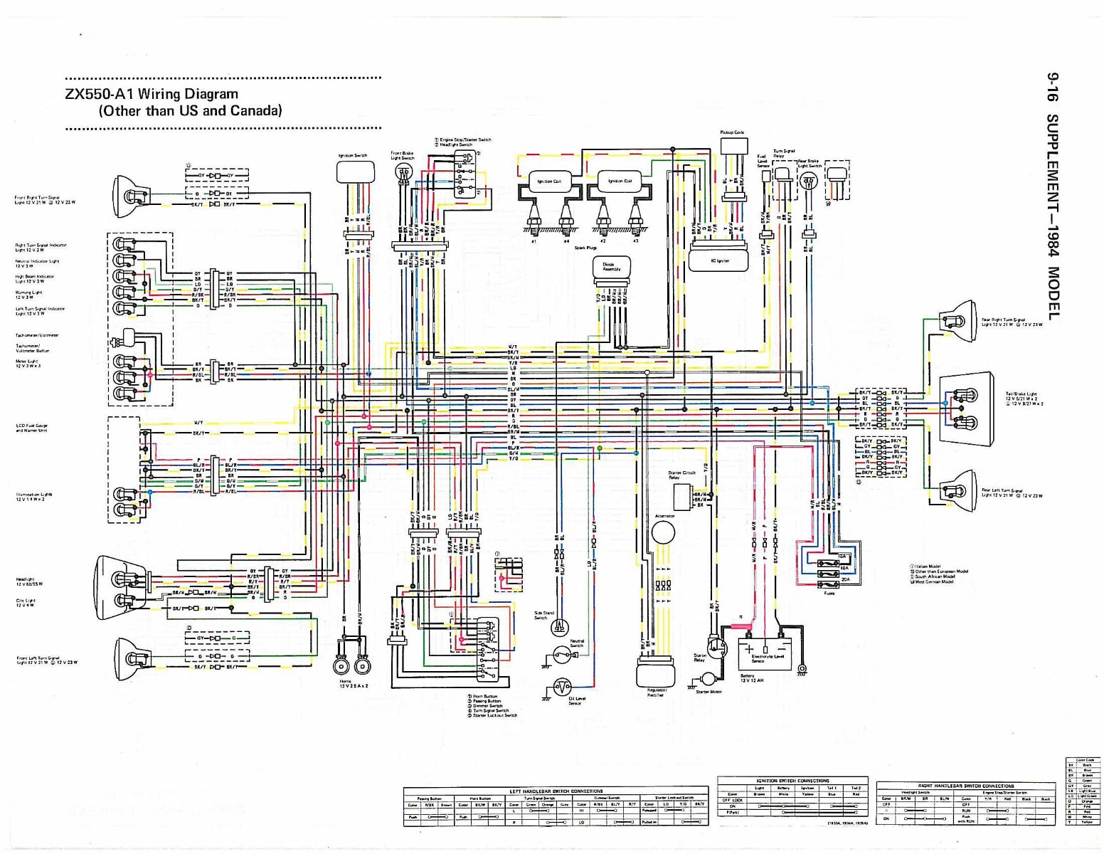 12 Jan 2019 17:14 - 12 Jan 2019 17:16loudhvx wrote: Yes, unfortunately, the 1983 Kz550 models wiring diagrams seem to only be in black and white. You probably have the same one from my website from the white base manual (1983 covered in the appendices). I attached a partial sample of it blown up a bit. I can barely make out the wire color abbreviations for the more obvious wires. I'm not sure where the scan came from, but I think it's the only one of the white base manual.