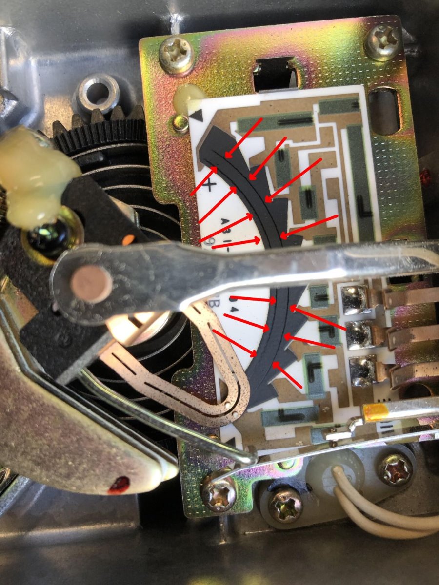 Try to clean and freshen up the resistor layer surface with an soft rubber eraser, works on tv remote controls button layer too.