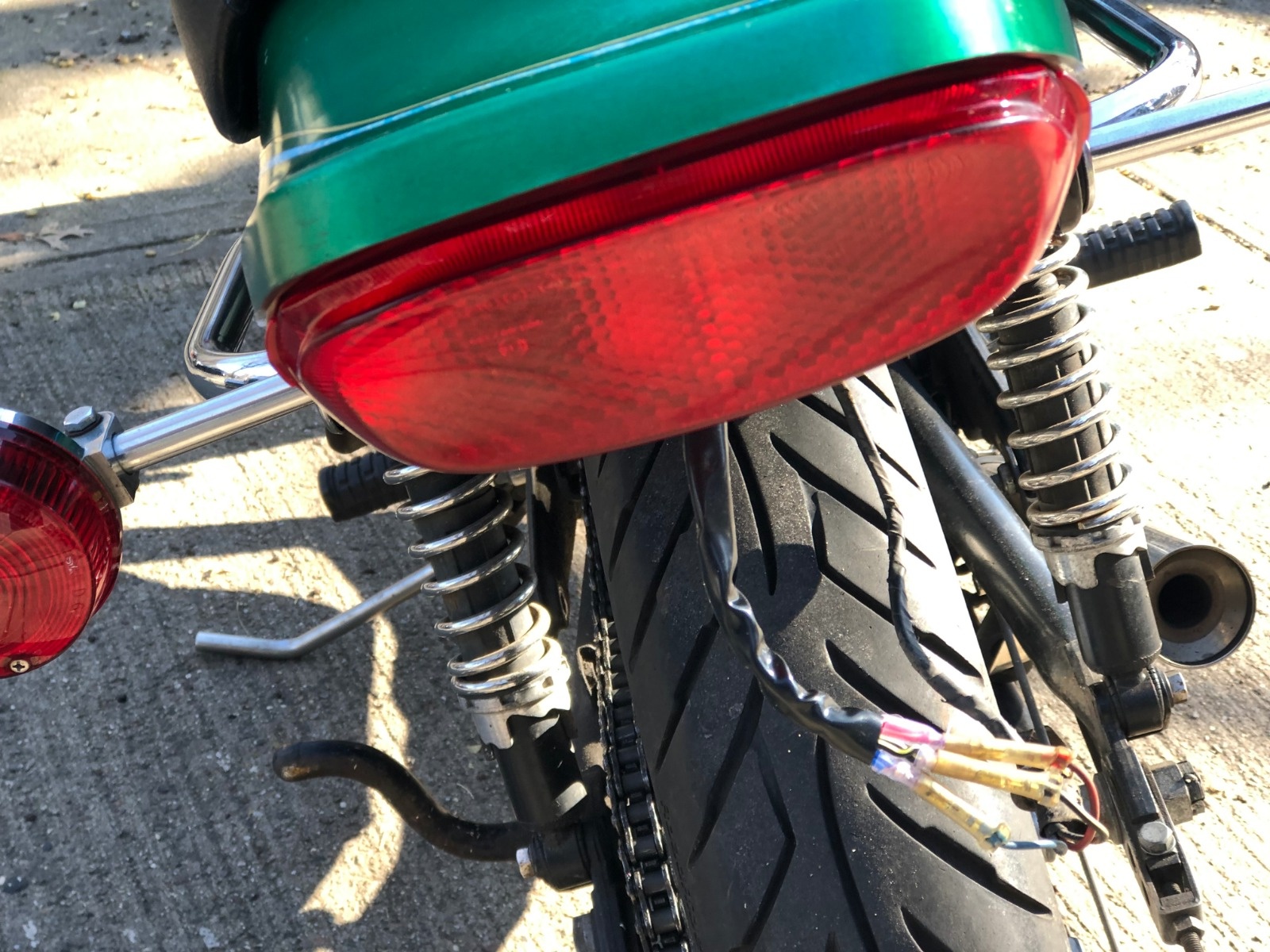 I just took a 2001 ZX6E tail light and mounted it upside down as a tail light on my bike. I want the rear to look proportional.