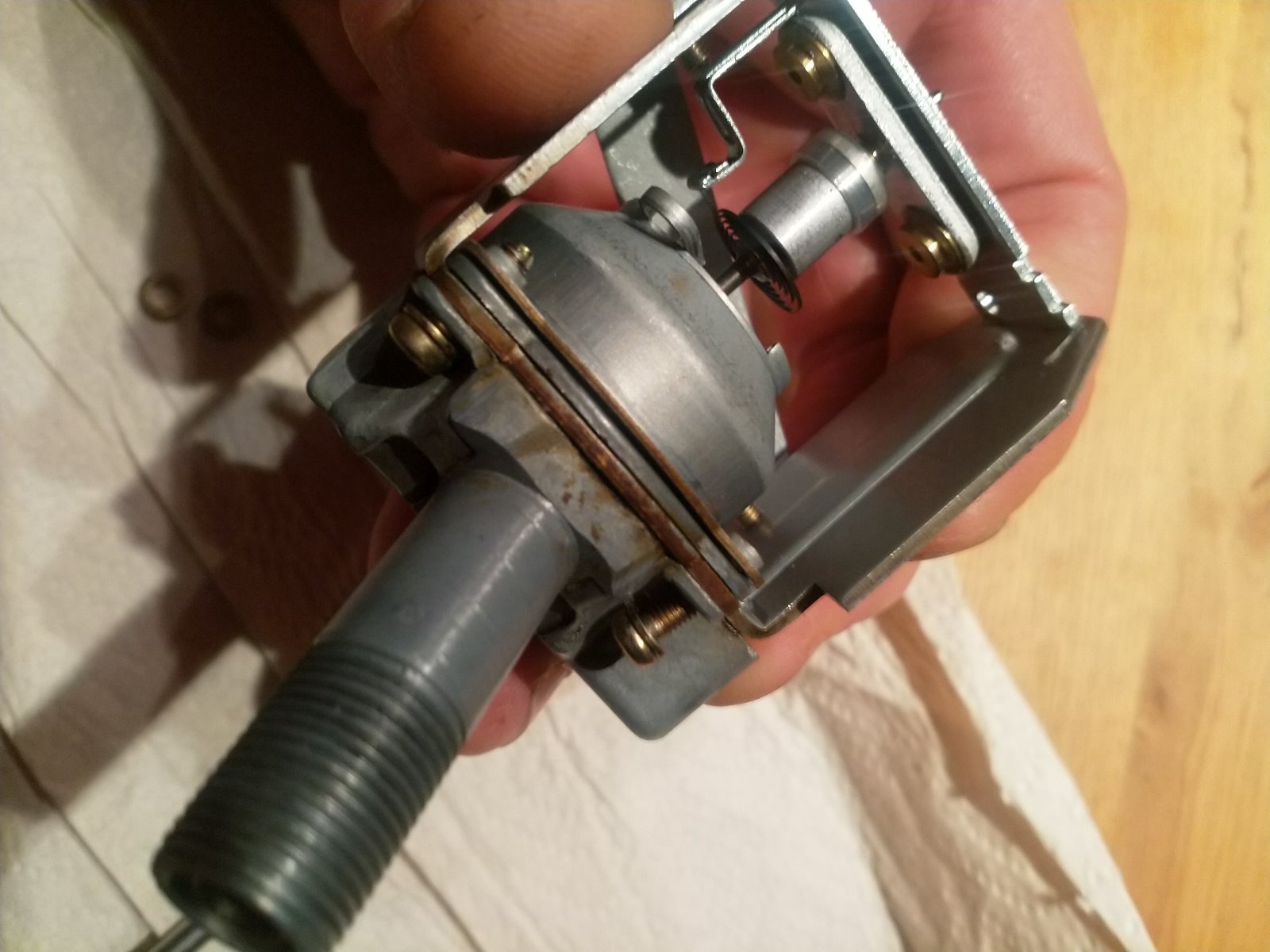 In reply #801763 on pg 3, he says there are 2 tiny clips that hold the needle shaft in place.