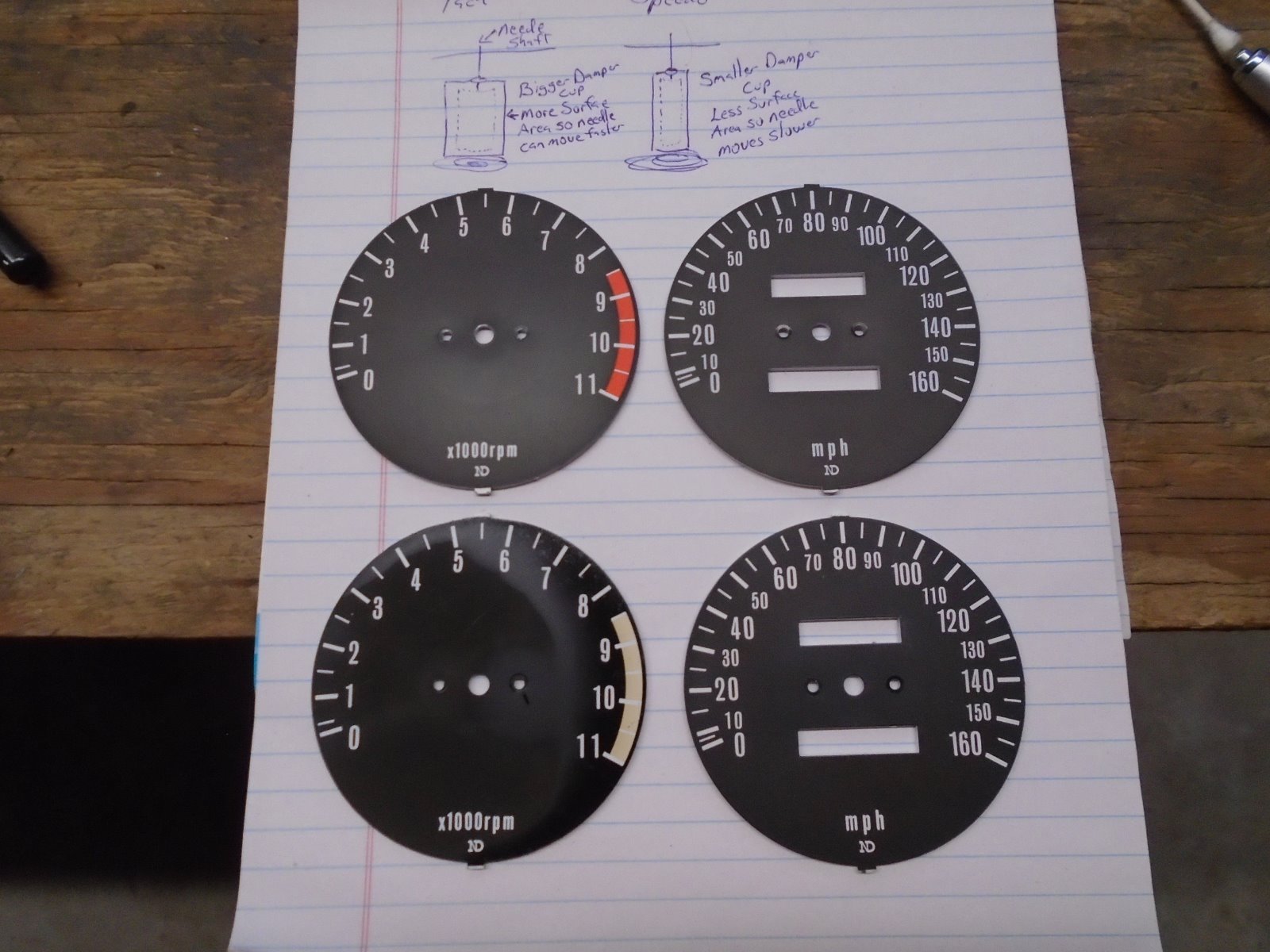 Here is some stuff i'm doing to Mikaw's gauges. Refill damper cups and product used, I use, and some info for others that might find it interesting or useful. More photos will be added, cannot get them all in one reply. These suffered from damper fluid puking, bad storage. Some pinhole pitting of silkscreen, allows light to shine thru when ridding at night. Note these are Used OEM faces. Hand re-painted redline on tach. And mileage register removal to whiten-up the 1/10th mile wheel.