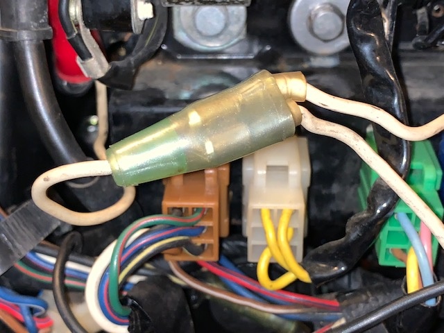 I am trying to clean up some wiring issues on my '77 KZ-1000A1 and have come to a roadblock of sorts as I don't have a decent schematic of the wiring on my bike. Under the left side cover are three white wires that I think meet at a triple connector. I am not sure of this because over the last six months more has been done to this bike than I care to remember. Does anyone know if these 3 white wires actually come together at this connector? I have included a picture to show the connector.