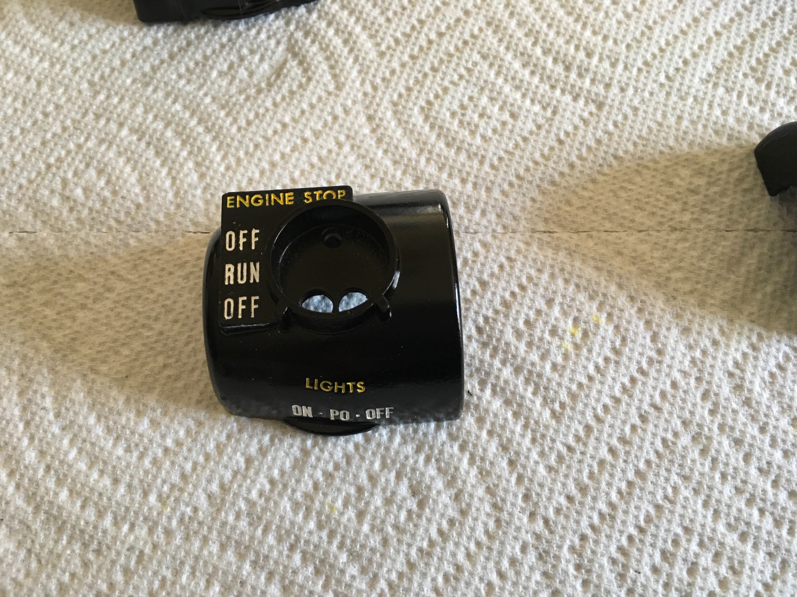 9-er, Sorry I have never found a replacement for the 77-up on/off/on switch. I know they are plagued with more issues than the previous ones. I can paint the red arrow on top and a light hit with a fast moving steel brush kinda brings back the "black shiny" color. You can replace the single ball bearing and clean the contacts but if the lower plate's 3 lands where the bearing travels is trashed it's a moot point. Hardrock, Some photos +. I'm NO painter but what I do seems to hold up for some time. I don't clear them because I want to maintain the original matte OEM finish. You can of course do whatever you like looking at? I just #8 bead blast, prime, paint and detail. I use Testors enamel White, Red and Yellow.