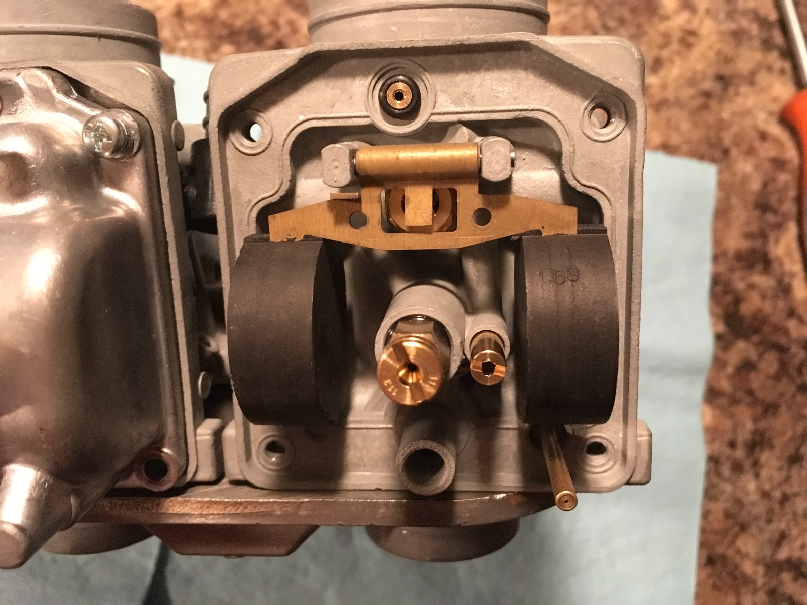 The bowl vents had hoses on them from the factory but you don’t really need them. Like TexasKZ and Scirocco have mentioned pull the bowls off and clean everything up real well. Nothing is going to spring out at you. See picture of the basic guts of a carburetor bowl area. If you feel like your mechanical abilities will allow you I’d pull the carbs off and clean them up on the bench. Get a few cans of carb clean and spray every passage out, just because cautious as some will want to spray back at you. The best thing to do is get 4 Tupperware type containers and make sure all the parts stay with the carb body they came out of. You need to inspect the rubber intake boots for cracks and rot, if any air get in through them the engine won’t run well. Your gonna need new bowl gaskets also.