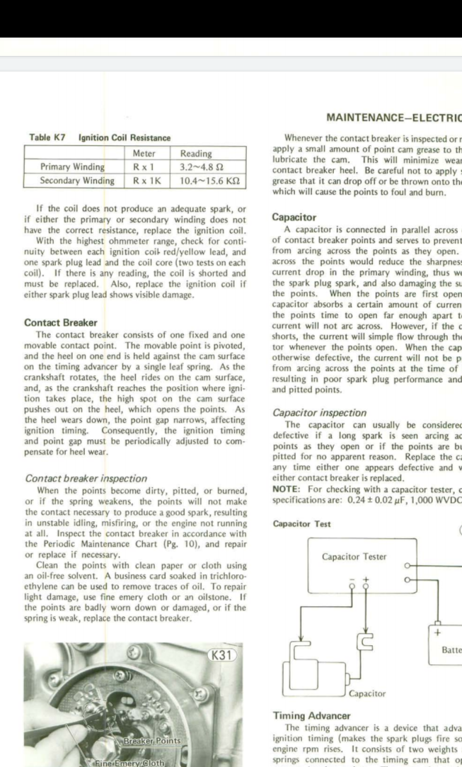 Definitely getting things sorted out. My goal is just to get the bike in safe good mechanical shape and ride it like that for summer until fall and then when the weather gets bad get more intense with rebuilding and learning. Right now I need to get replacement pods or at least one as I have no air filter on carb 3 right now. Junk pods, gonna get some from Dime City for now as the bike is used to pods. I couldn't get a reading at all on my caps but shortly after the lead fell off my meter completely so I barely got my 7 dollars worth from Harbor Freight. Gonna check that again after I get a new meter cuz' I won't rest until I get a proper reading. I know 1 and 4 are ngk and 2 and 3 look stock but i'm not sure what type wires/caps they are exactly. I've got spark on all 4 but I do feel like it could be stronger. Gonna look into Mikaws advice on rich/lean also, just gotta be sure of the screw(s) I'm working with. Carbs need cleaned too, is there some cleaning I can do with the carbs on the rack that may suffice for now? I got shipped the wrong float bowl gaskets all together, someone elses order so that's still pending. Cut those shit fork boots off, new grips/throttle tube, fixed taillight, topped dot 3 fluids, tire pressure, gonna do a full oil change/filter but I have to drop the whole header, check gaskets. Gapping plugs to spec as I lazily just put em in when I was diagnosing no spark. Time is limited at my off-site garage as I'm now stay at home Dad due to this virus stuff. Plenty of time to read the manual and be on the forum!
