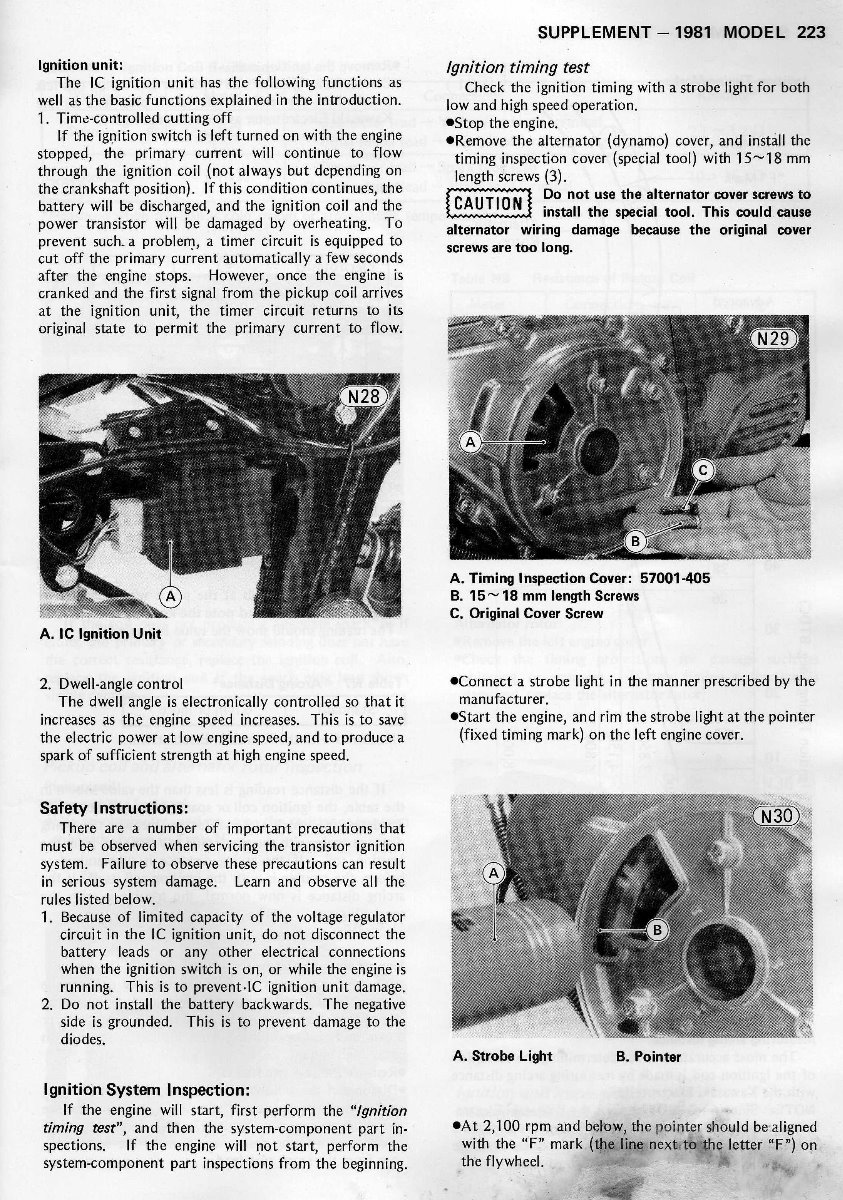 Hiya Peter, I just wanted to thank you for posting these images and information! I had the exact same experience, could not find a manual out here in Australia that had this information. I am rebuilding my kz200 engine and thought I was going mad that I had lost the advanced timing unit… but my guy said it was never there… there was no confirmation anywhere until I see these images! Great stuff! Thank you!