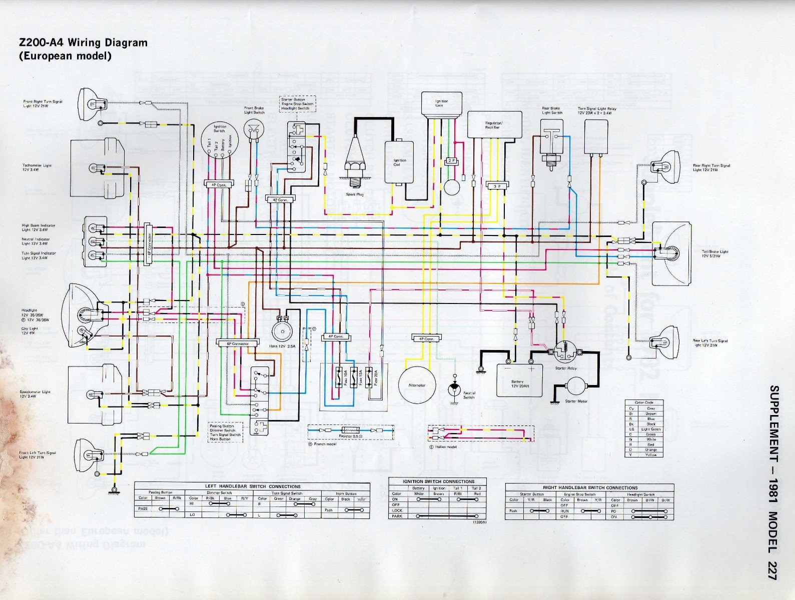 I have attach a file of a KZ200 service manual and the information you need is in the supplement at the back of the book. Hope this helps and there is amply spares floating around.