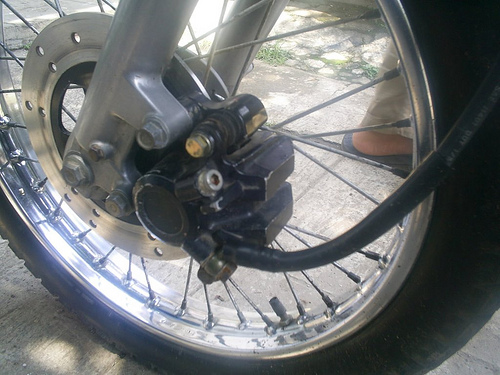 So I got it running. Starting it makes a squeeling noise. Perhaps the starter motor needs to be redone. The clucth doesnt disengage well, I'll keep adjusting. I read somewhere here that there might only be 5 friction plates as opposed to 6? The clutch looks more like the KLR250 than a KZ200, mechanics-wise. I've tried getting the carb serviced, all mechanics gave me some silly story or excuse why it wasnt or couldnt be done, so it's not idling well. The front brake alternative continues, because I cant figure out putting the original one back together.