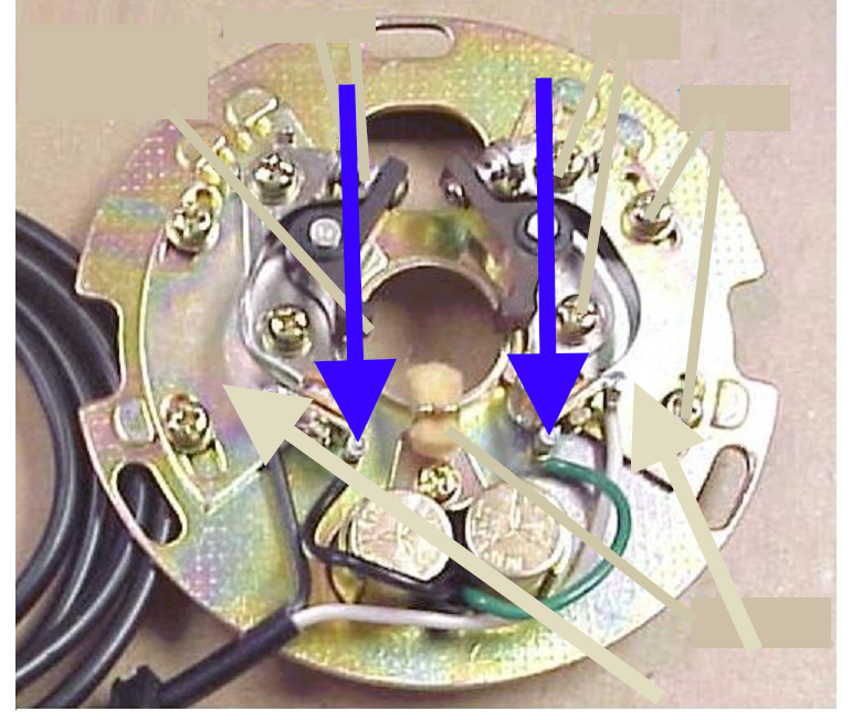 There is a break in the circuit between the points plate and the wires going out to the coil.