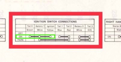 He is saying you can power the brown on you bike with a switched wire. Look at the Schematic in the red highlighted box. When ignition is turned it is connecting white which is 12V+ to the yellow and to the brown. So you would be able it connect the chassis side (load) of the brown wire to the to the yellow. Verify that on the new switch you get with a continuity tester. The switch white plug needs to be disconnected from the bike. Aslo you can verify it by hunting down the Schematic of the ignition you are swapping in.