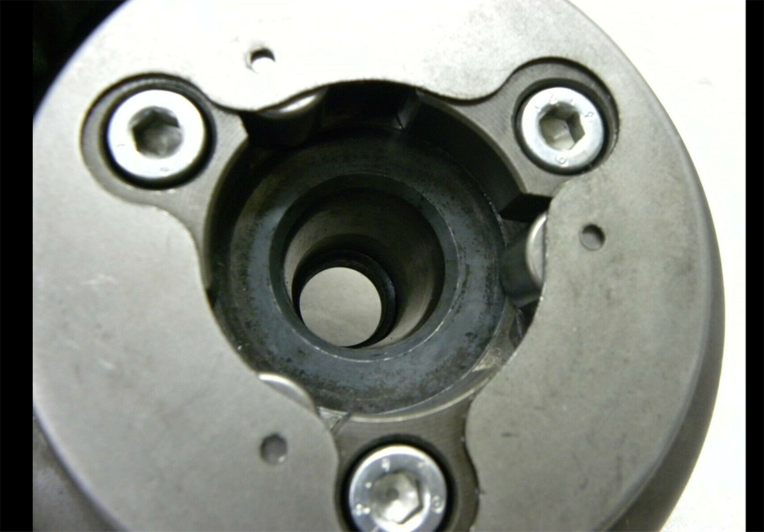 The sprag surface has some nice grooves. May need to have it machined or replaced. I did get the sprag off today. We had to really mess up the cover to get to the bolts. I will make it a kicker until I find a sprag.