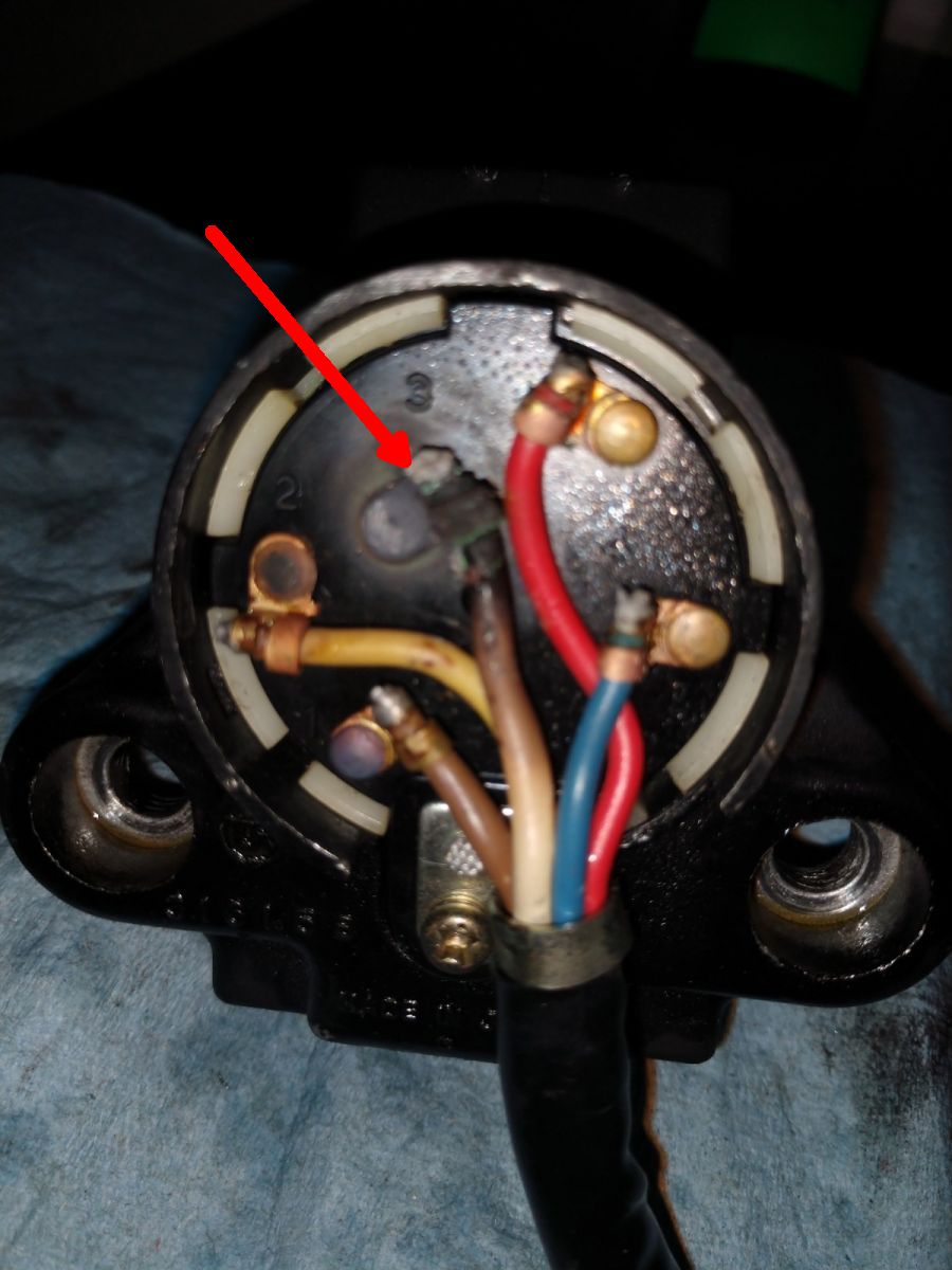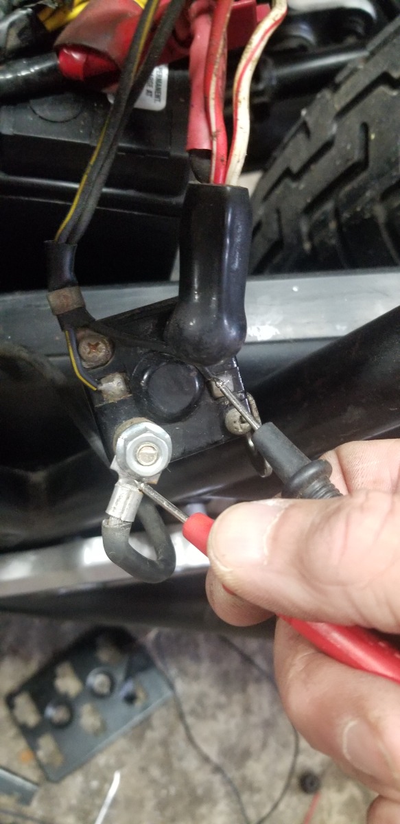 All of the voltages at the key are 6.57 or less. I was checking ohms on some of the wires and am getting 175.0 on the posts in the picture. Not sure what that means lol. Could this starter relay be an issue. Just a side note, while checking wires the battery went from 11.38 to 4.35. I was working the key switch intermittently on/off. I'm so lost. I hate to keep throwing parts at it. The previous owner and my buff always said IT'S SOMETHING STUPID lol