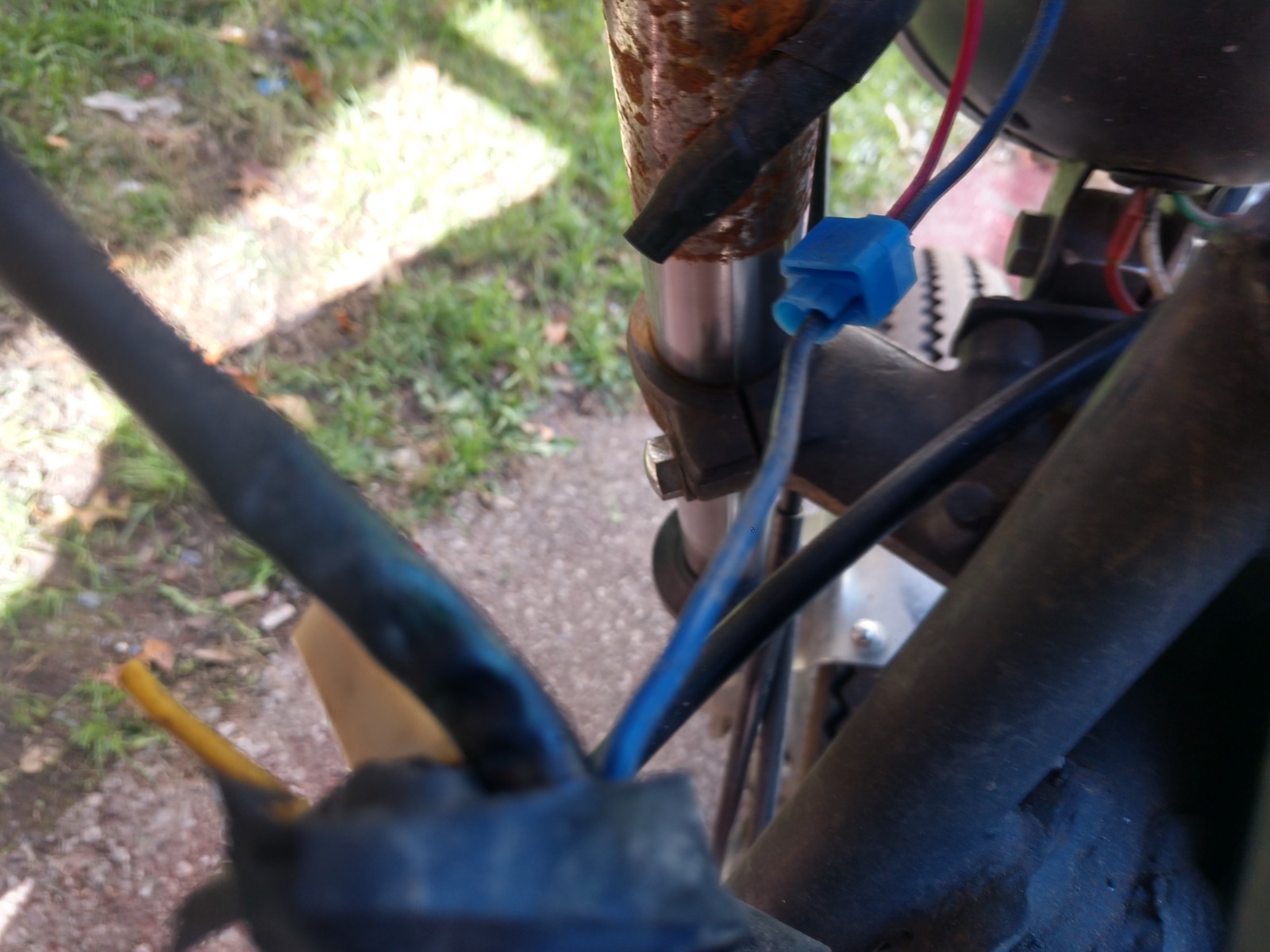 AND NOT SURE WHERE THE (BLUE) WIRE SHOULD PLUG INTO. iTS COMING FROM THE HARNESS SOMEWHERE WHICH. IT GOES: