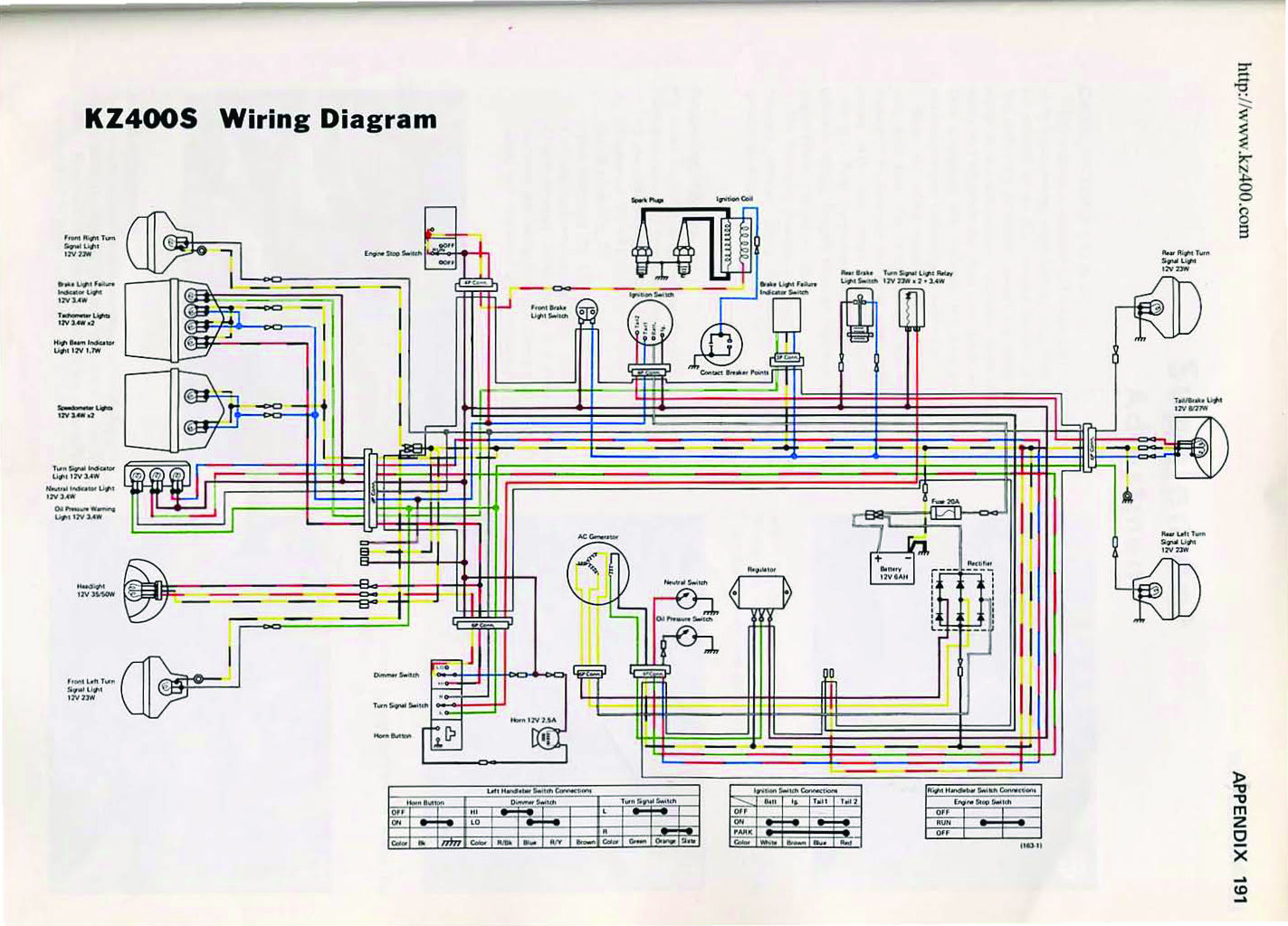 Also, based on the frame number on the sticker, that is a 1975 KZ400S. Be sure that you refer to the correct wiring diagram as there are small differences between the various 400 models.
