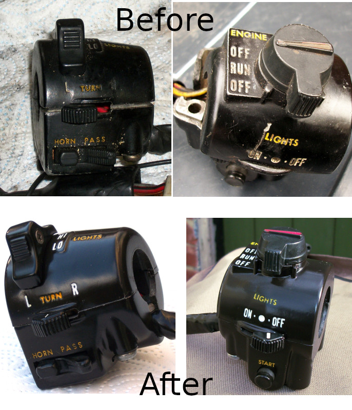 Hello, I am restoring a 1977 kawasaki kz650B and I have noticed that the paint is deteriorated where the switches are located on the left side of the indicators and the switches on the right side, everything is located on the horn button, etc.