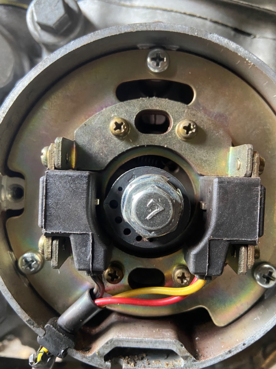 I have wired up a test bench on the engine in attempt to get spark with no luck. I am thinking my problem may lay in my points system.