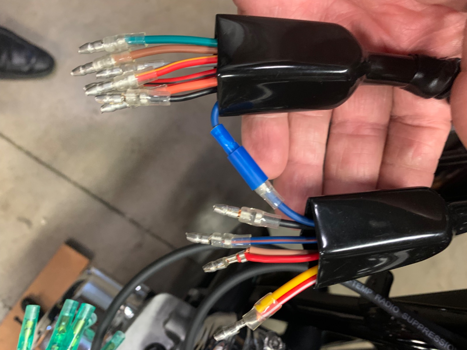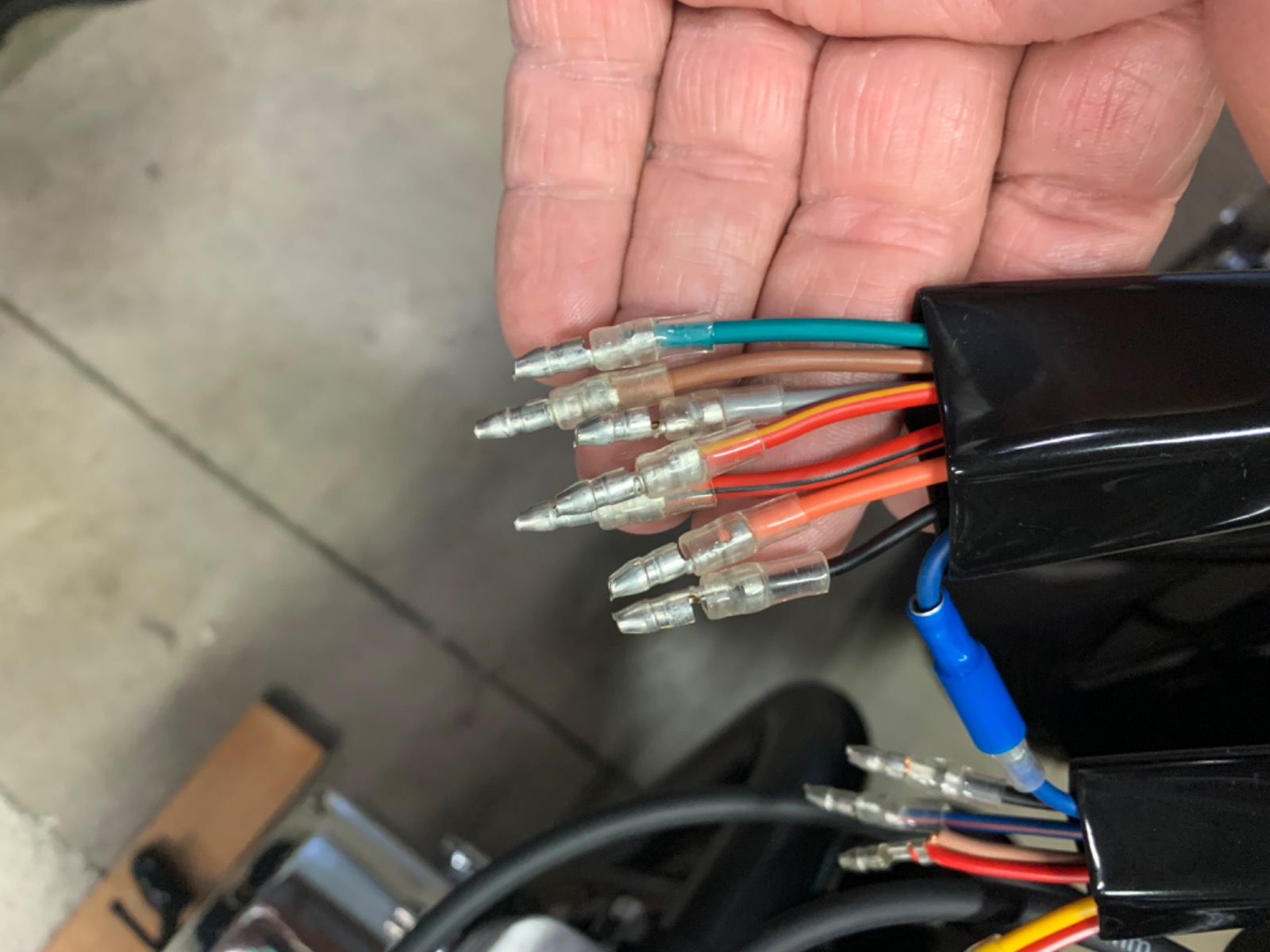Ok Wookie58.. I’m finally back at it. Hopefully you can make sense of the wires. Picture’s of the left and right harnesses and the wires coming out of the main loom. I disconnected all so I could get a better picture of the colors (except the two blues which I hope connect together... they did on all my others). I’m seeing a slightly different setup than the one you did for the other bike.. the right control has a solid red and brown connected to one male and also a red and white/stripe and yellow connected to a single male connector.Let me know if I can clarify colors… dots.. stripe’s for you. Thank you,Joe