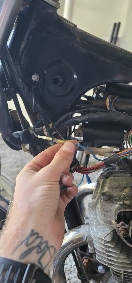 So trying to figure out what goes where on this damn thing. I don't believe the previous owner had this wired up correctly at all. Any tips on where these belong and how the coils are meant to be wired? It's an 81 kz305. Also, if I have the two blue wires connected in the last photo the headlight stays on. Is there a switch for the headlight that I haven't found?