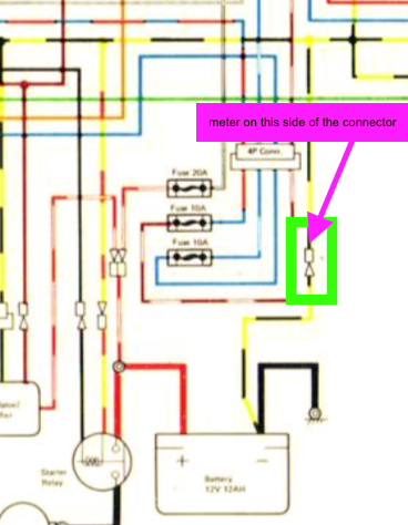 backprobe the keyswitch connector with the black probe where I marked.