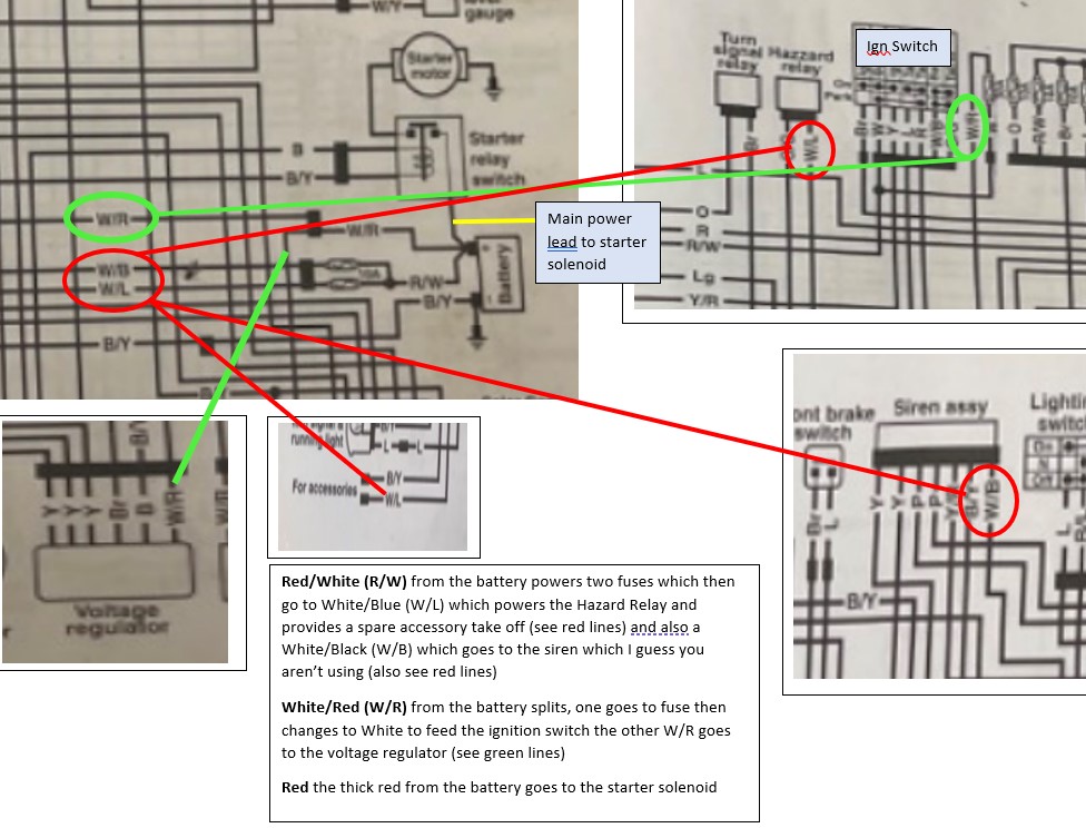 OK the below should get you started with your power supplies from the battery (apologies for it being a bit messy, didn't have a lot of time), obviously being a "P" there is a lot of extra wiring so look carefully at the diagram before connecting anything you aren't sure about
