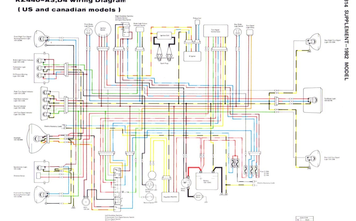 P.S. My bike also has the yellow/red wire on the starter solenoid connecting to the ground circuit, like the A2/D2 schematic, but the everything else seems to follow the A3/D4 pattern, other than the turn signals being spliced into red/blue tail light wire. And my front turn signals are two wire, just like in the A3/D4 schematic.