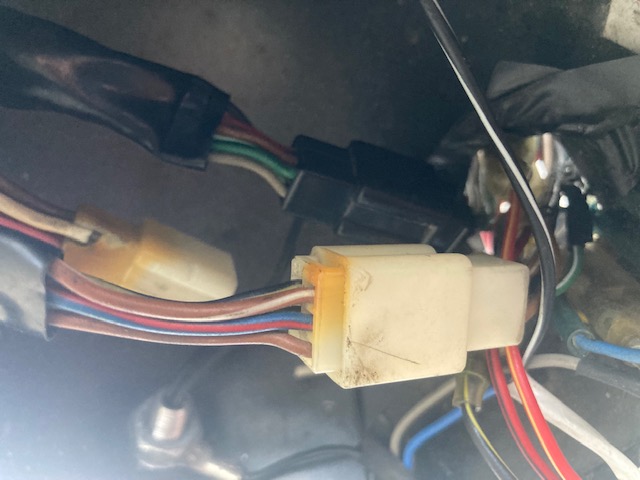 6) When I unplug the bullet connectors just south of the turn signals, I get open lead reading in the red/blue wire.