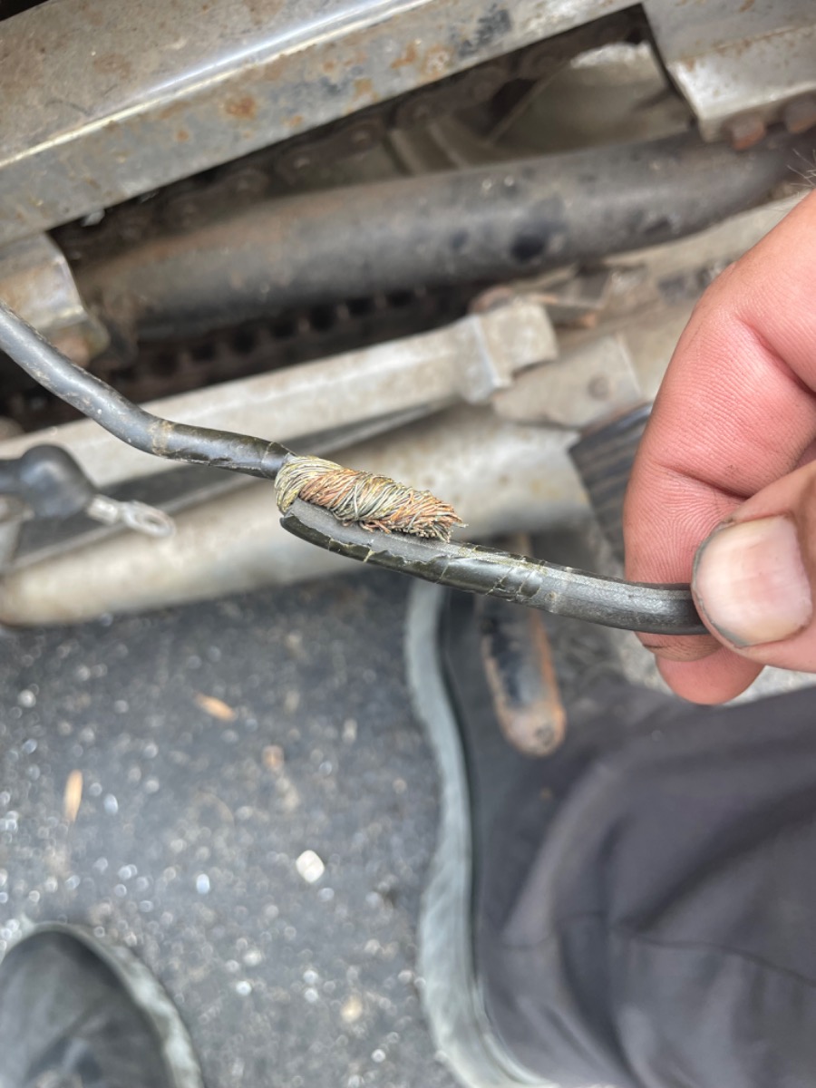 I’ve spent the last hour trying to make sense of this bubba-fied wiring someone did. I’m pretty sure I have it all pretty much figured out. I’m just taking my time trying to sort it out. Here is the freaking positive battery cable that was on it.