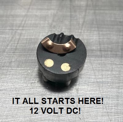 2 - 1/8" circles of brass & a .012" piece of copper! Transfer that 12V's to the rest of the system.