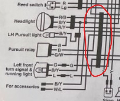 This is possibly unrelated, but I noticed that the 9 pin connector that plugs into the faring was loose. I plugged it in tighter, but it didn't help with the headlights. Can you tell me what is controlled by that plug? The only 9 pin I can see on the diagram is very relevant as most of the front lighting runs through that plug