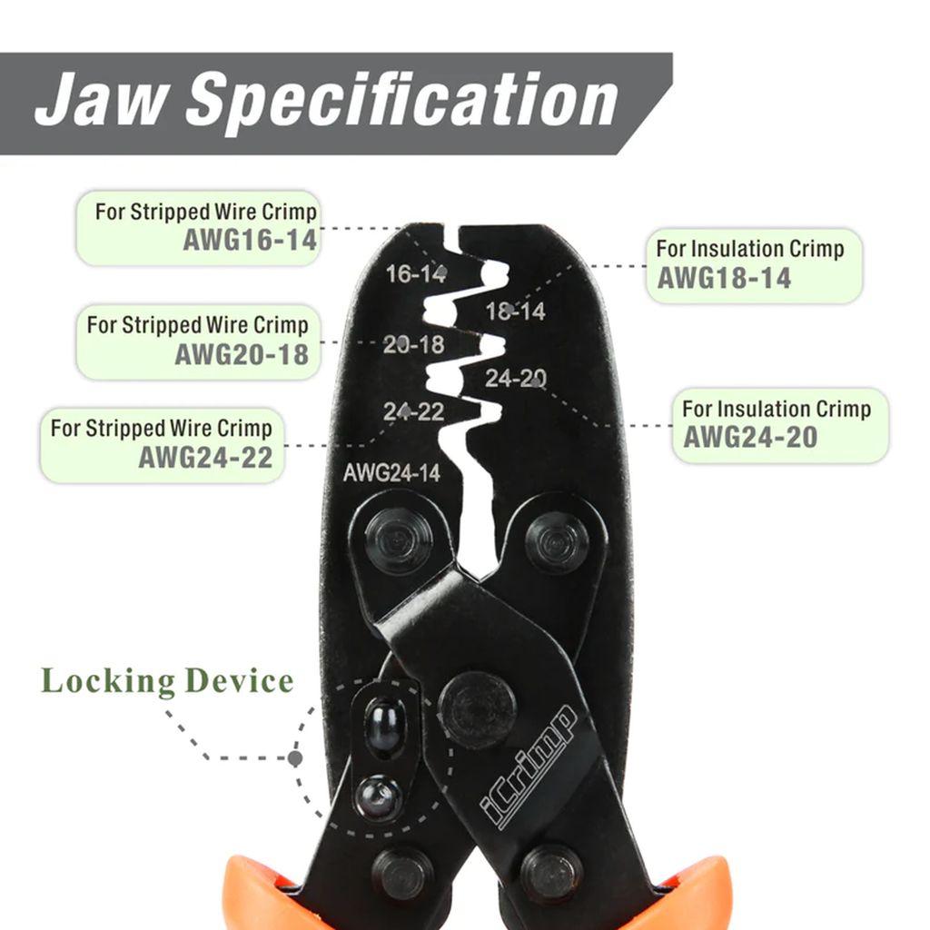 The Iwiss brand IWS-1424A plier crimper will cover every new & re-used OEM open barrel connector we've seen on vintage Kaw & Honda bikes. It's an unmitigated bargain as well at $10.00 - $15.00. It's our go-to tool for new & used open barrel pins.