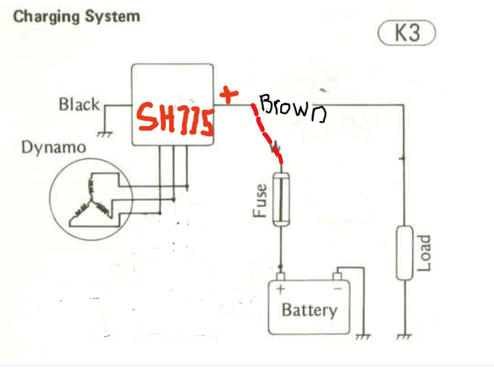 30 May 2024 01:34Absolutely (the diagram I posted was the factory wiring and the text above explained what to do) this version of your diagram is much clearer (the first one looked like the + was going to the brown which would have put the generator output through the ignition switch) hopefully below shows what I was saying more clearlyCorrect me if I'm wrong, but the diagram in the other thread shows a 6 wire R/R. What my diagram references is a 5 wire R/R, as installed into a 1976 KZ1000.Hi Ed, see my post in this link,