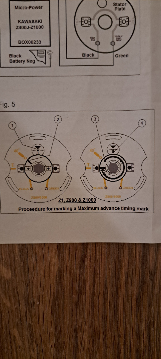 When doing it like i have by not removing the advancer unit i dont understand why i need to make a mark like the manual says,because i already have the F and full advance marks on the advancer ??. Anyway i installed it with the advacer unit because that is the only way it is possible . After some fiddling with installing the new coils temporarly and wires also temporarly i checked sparks on all 4 plugs simutaniusly.The spark was very strong and white .Then tried to fire up the bike and it fired up right away. One thing i noticed was that i had no choke on.I always had to use some choke to get it started.This time i needed no choke and the idle rised fast up to 3000-4000 rpm !! so i had to adjust it down .I think that is a sign that the bike had weak spark before and lots of fuel did not get ignited.The exhaust sounded much more crispy and strong/louder and when i held my hand over the end of mufflers i could feel it was a stronger pressure than before when i done this test.