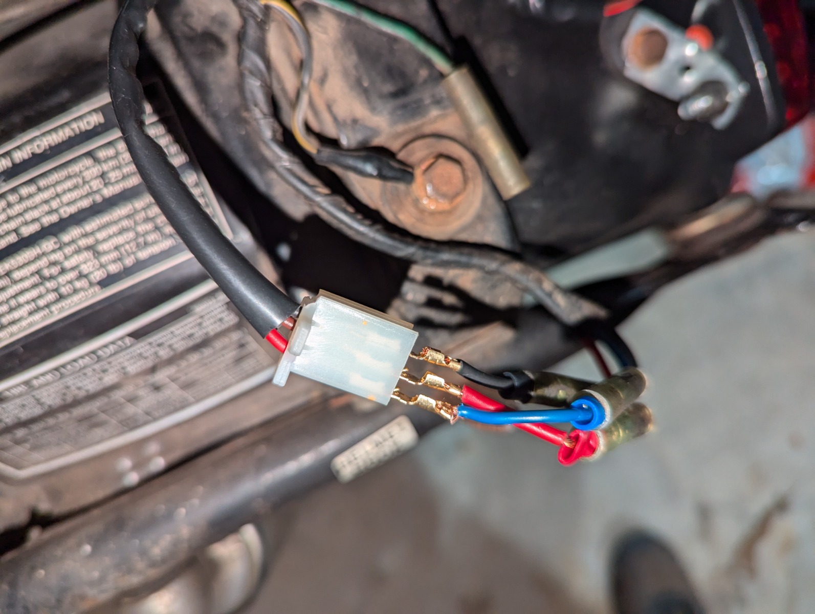 Thanks and no, that was just my attempt to confirm it was all working before I crimped it all and found a spot to hide the wires. Had found a matching harness plug to mate with the one the light has but I think I may just match the factory bullets instead as the whole harness plug I got doesn't inspire a lot of confidence. All that said, why wouldn't I get the same results so long as everything is making contact?