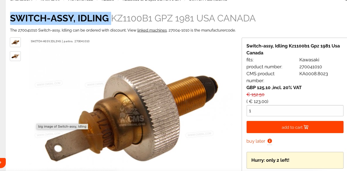 I only need the idle switch but it might be good to buy all the parts as spares if the price is good. It says negotiable price, do you think 100 euro including the shipping to UK is a reasonable offer?