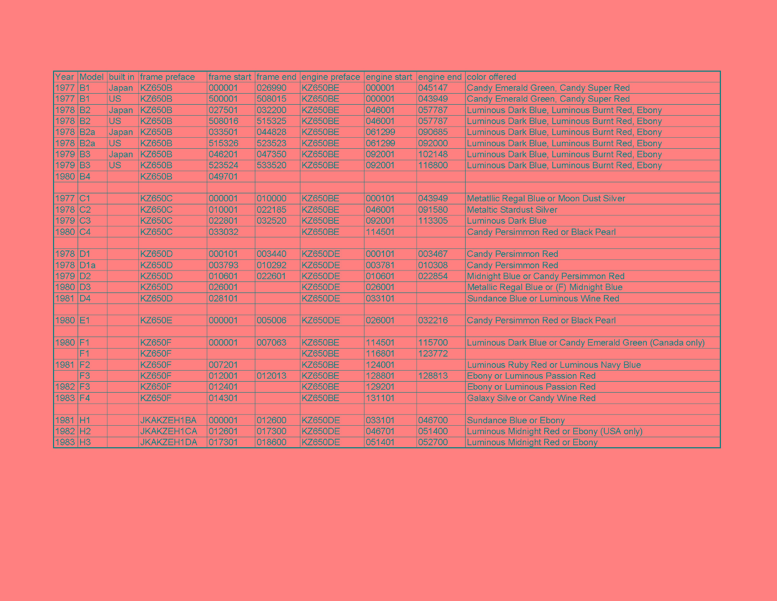 Frame number: KZ650D-013726