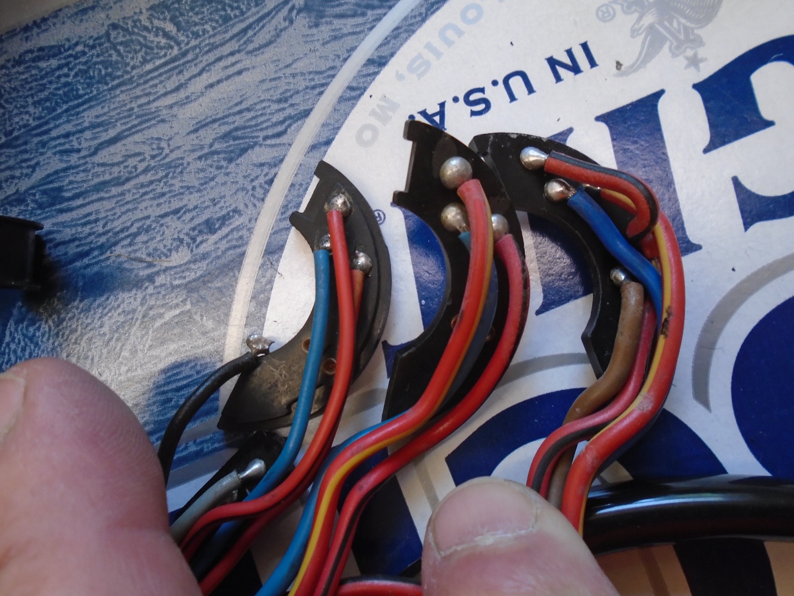Jim, also sent to Your phone. But for the masses, some relevant crap. Pictures denote the Kawasaki Triples, typical Z1 then the Euro version plate wiring. ALL the plates are the same, just the soldering of wires that makes the difference for the headlight. Note the US version never utilized the spare two collets on the breadboard, the UK did, An additional "Brown" sheathed wire was attached and the RED/Black wire was bridged for the contacts. Note alo the triples also used the exact same plate but switched the Red/Black and Red/Yellow tracer wires around. Also the triples used a smaller wire and used a Yellow connector or red on the RH switchblock.