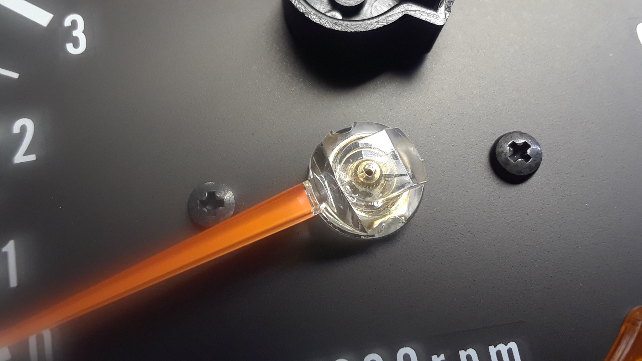 The trickiest part of servicing the gauge was getting the needle off. Daveo sent me two gauges so I could compare them. Before I found the root cause of the problem, I considered just swapping the face plates, since the real goal was to get the 160 MPH gauge working. The needle on the faulty gauge came off relatively easily, but the needle on the working gauge would not come off the shaft. Instead, the shaft started to pull out of the galvanometer movement. It seemed like if I pulled that out, it was never going back in. And I could not figure out a way to hold the shaft in place and get the needle off, so I gave up on that idea. Fortunately, as I said, the needle popped right off of the faulty gauge, so I was able to remove the face plate and then get down into the meter movement and find and fix the fault.