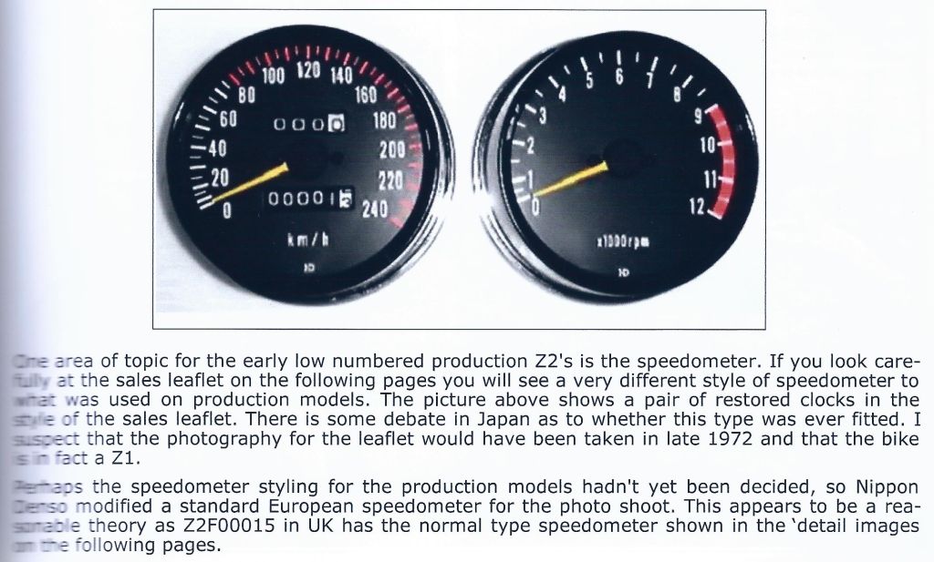 Is there any physical difference between the speedometer for the Z1 900 and Z2 750 other than the graduation in km with red markings and the red light on the Z2 …