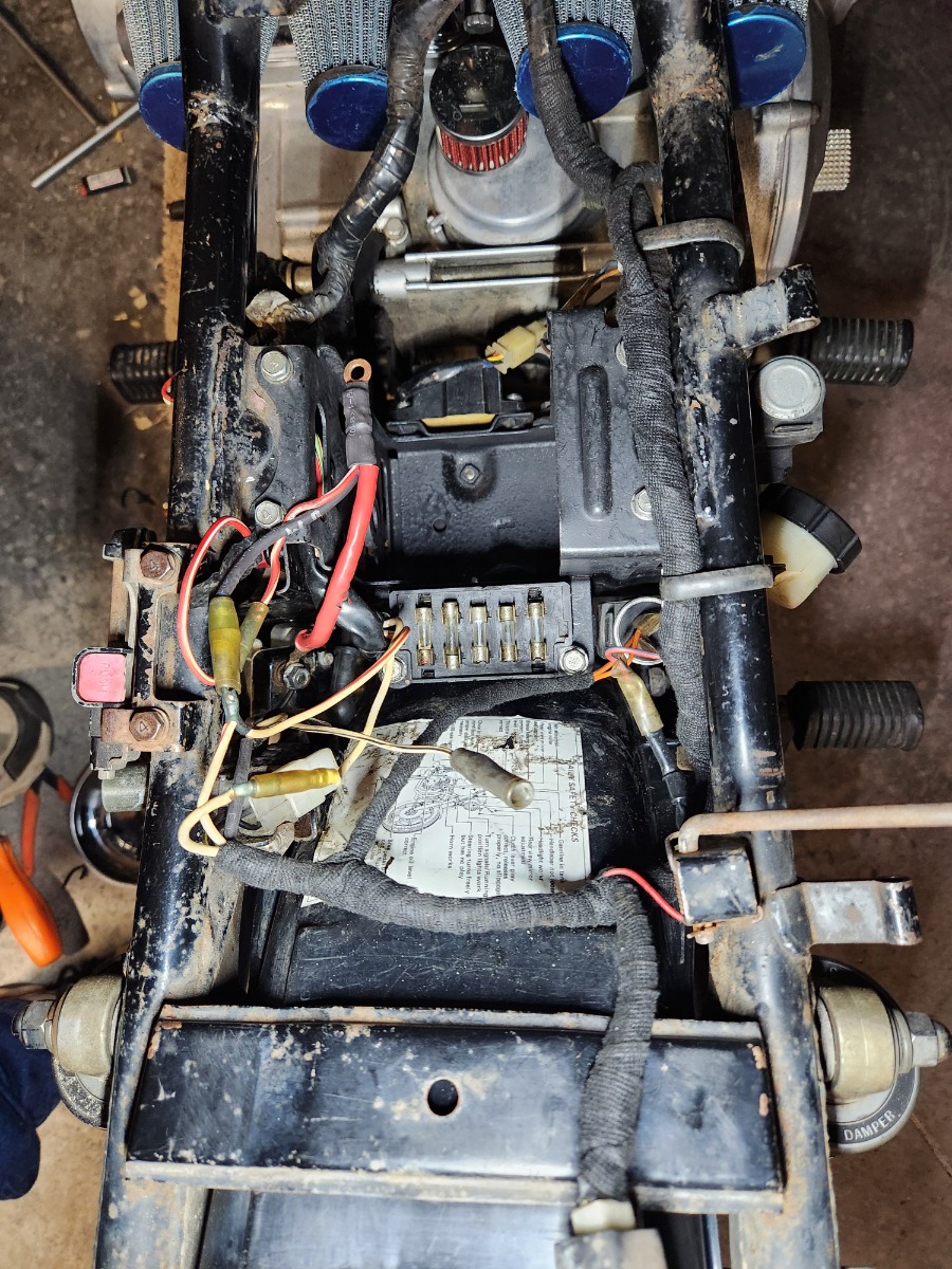 when I got the LTD, the wiring harness was hanging out of the bike. I have been trying to put it back where it belongs with pics from the internet. I am down to a few wires at the battery box. I have a white wire with a black trace and a female bullet connector left... My diagram says its a horn wire. Any guesses to what it is for?
