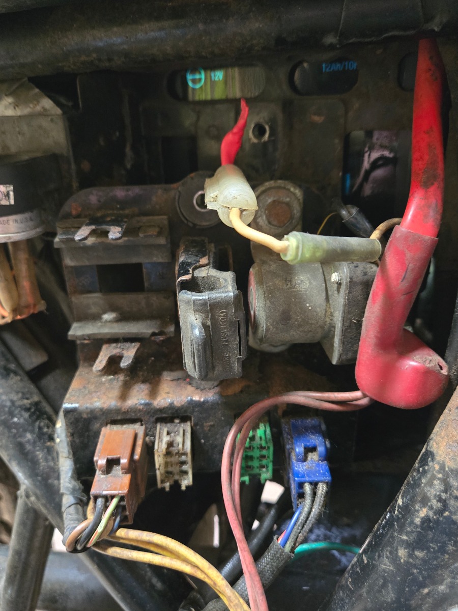 Three yellow wires together. I bet they are the main power wires from the generator (Correction: from the regulator.). Based on that and the condition of the connectors in the picture, I reckon there could be a wide array of electrical problems. Somewhere around here, Wookie58 has posted a basic electrical diagnosis tutorial. It should be your new best friend. A can of Deoxit D-5, some tiny soft wire brushes, and a multimeter will all be needed as well.