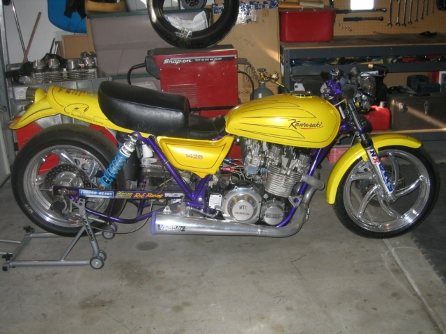 somehow tho i have no fear of building my own swingarm and relocating my shocks and stuffing a big back tire and slapping a late model big brake light wheel stiffer front end on. :woohoo: :lol: :silly: