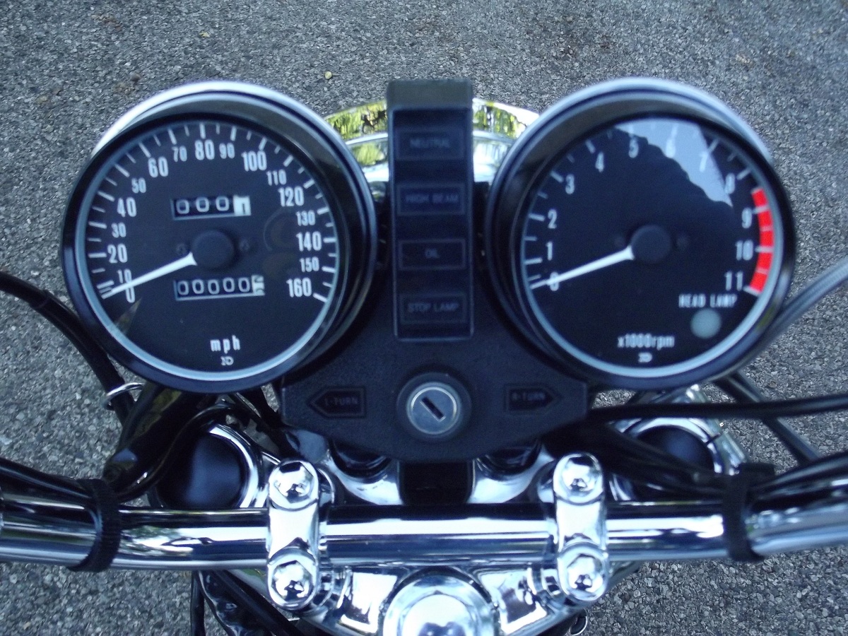 pete greek1 wrote: Did'nt take any b-4 pics. my original speedo was in great shape, but only went up to 85 MPH, so I bought this speedo on E-bay, it had a cracked glass some rust & faded, Looked like brand new when I got it back, as you can see