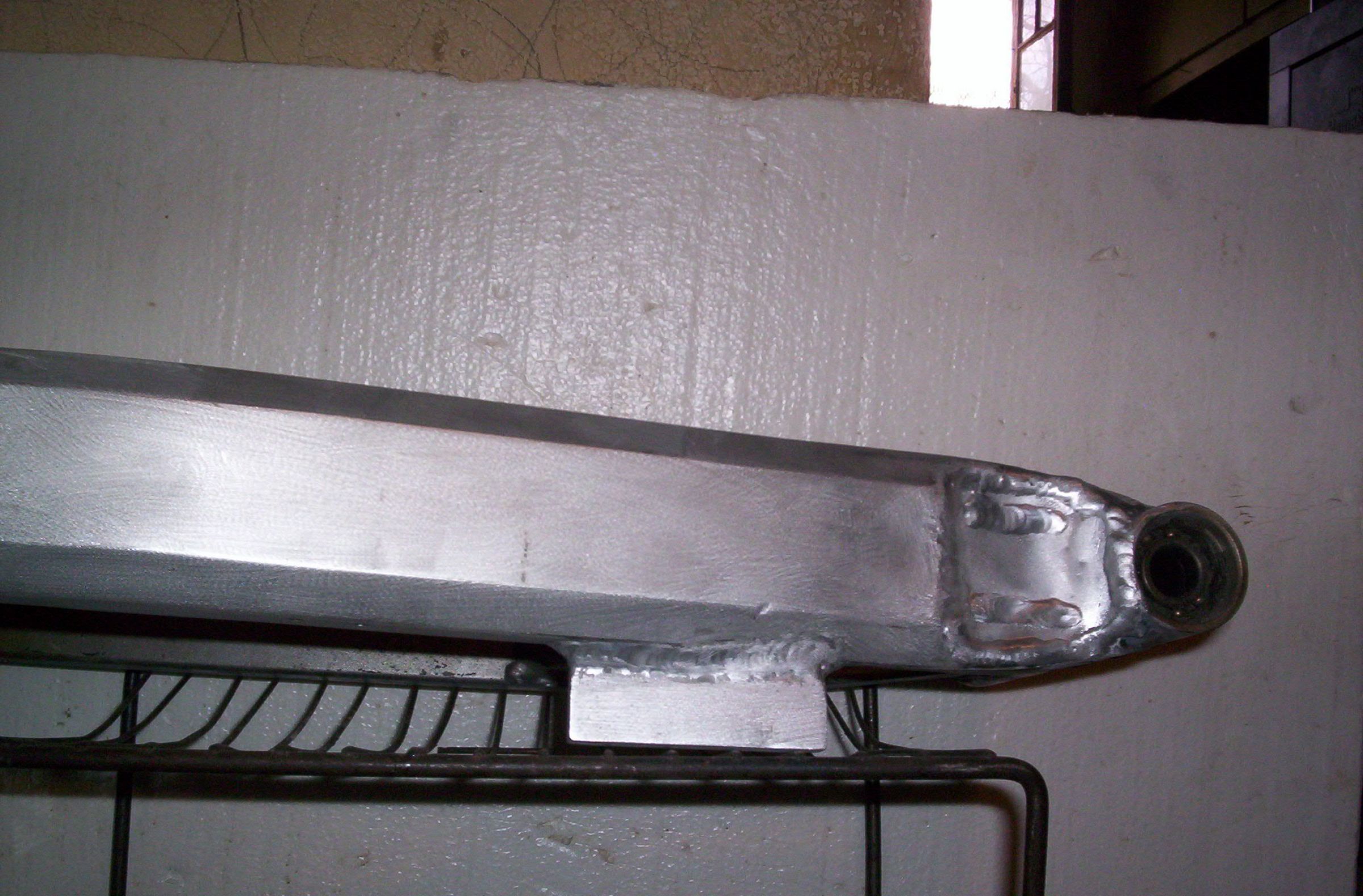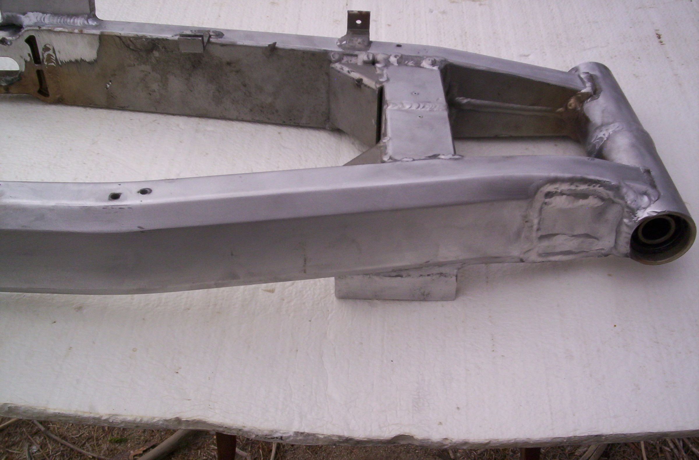 I'll buy a cobalt bit, cut my bushings and go in from the back side. Gonna shape the shock mounts and strip off the paint. I'll have to mount it once it's done, use some old chain I have laying around to get an accurate count on the links I need. I'll buy a complete set. Sprockets and O ring chain.