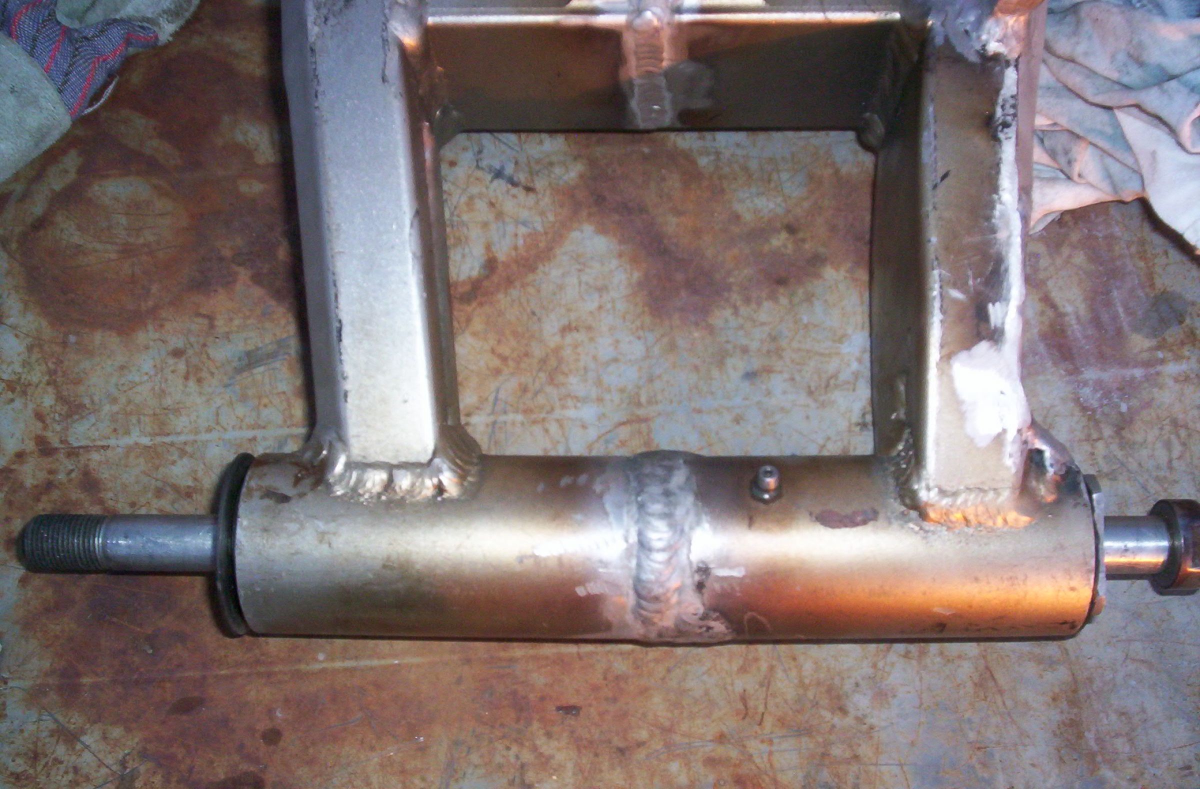 Cut the old pivot shaft and made my bushings. PITA That little welder is a POS. I'll do a little clean up later. If nothing else I have templates to be copied. They'll work but I like Leon's top hats better.