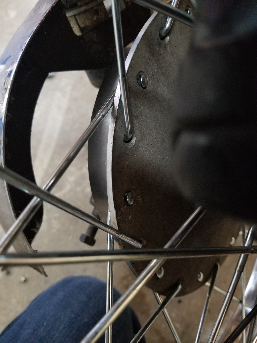 This is a kz750B /kz1000A rear wheel I did not take a pic before I simply removed the old spokes one at a time and replaced them with new it is laced correctly I think I just have cheap spokes like I said emgo brand