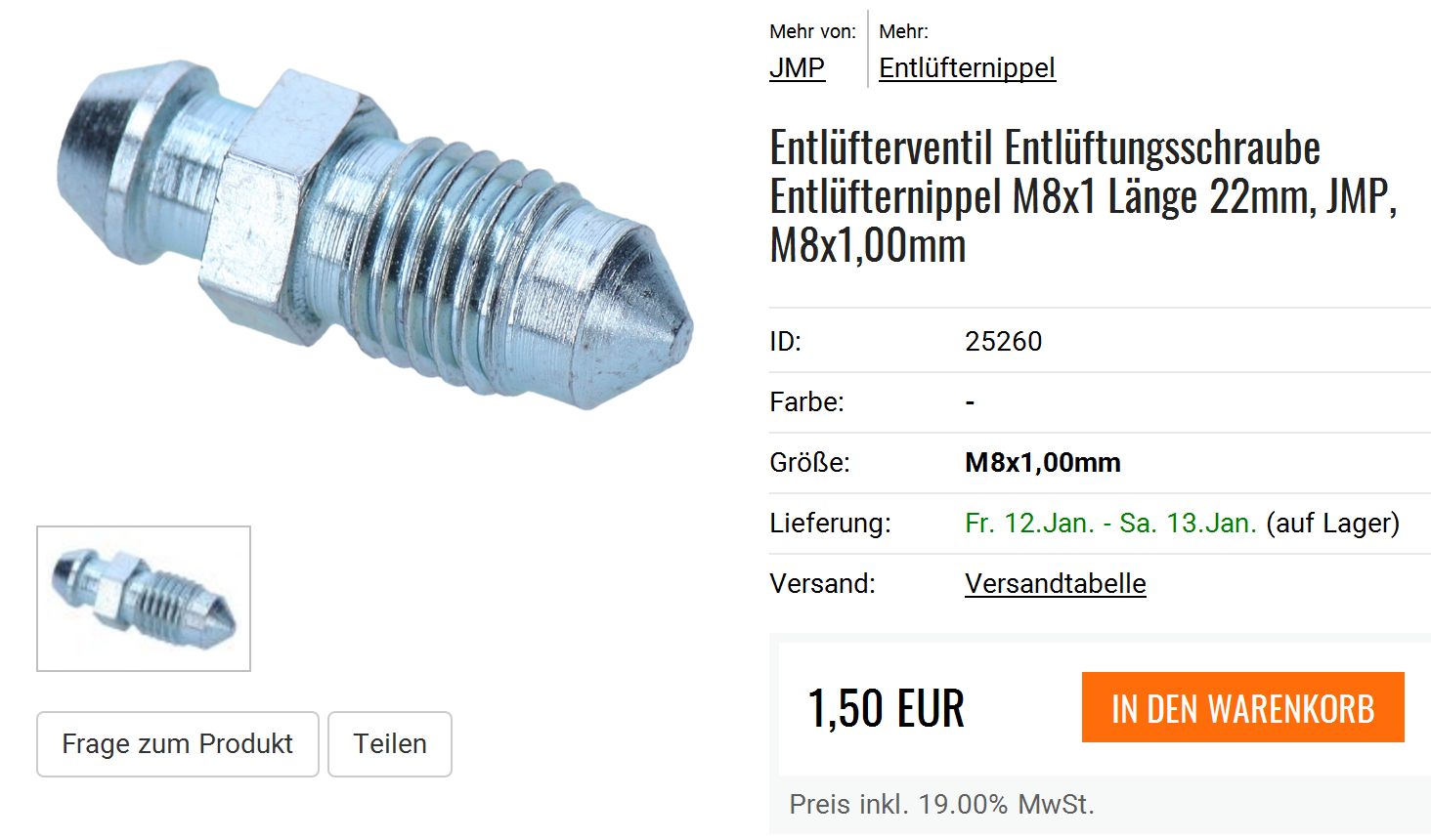 I have dual disc brake front, and on the right caliper has a earlier owner installed custom / bigger bleed screw, properly because he has damage the threats.... I want to install a new bleed screw with dust cover and be able to attach tube for taking out air etc...