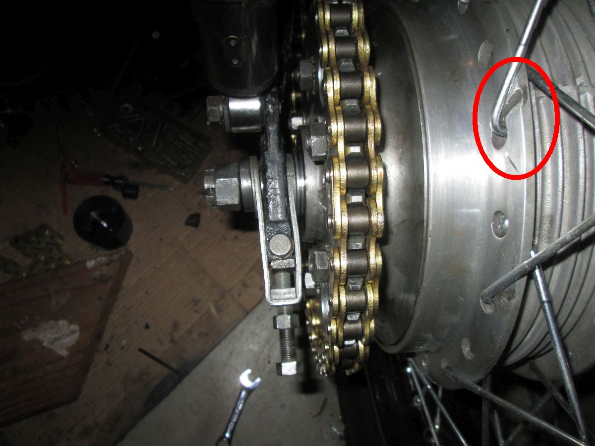 This bike had an extended swing arm when I got it. First thing I did was go back to a stock arm... got a used on off Ebay. ... But now I'm having trouble getting the wheel lined up. If I get the adjusters even, the wheel almost rubs on the right arm. If I center the wheel, the adjusters are off by about 3/8ths of an inch (closer on right) but the chain binds. I am using the spacers that I took off the extended arm. So those are the facts, here's a pic. This pic was taken with the adjusters evened out. Any ideas on this would be greatly appreciated.