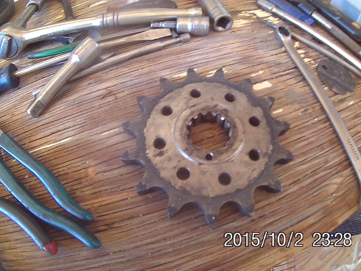 At least 10.000 miles on this one. First a NOS O ring chain, when it developed tight spots a new Gold high performance O ring chain (made in china) then a standard 630 chain until I could afford a whole new setup. See any misalignment marks or undue wear?
