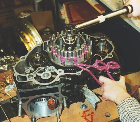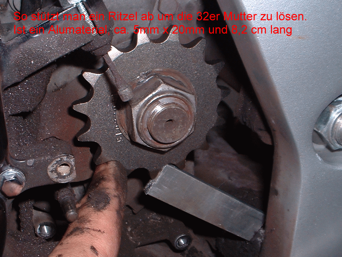To loosen the nut on the front sprocket, some ideas in pics to block the sprocket, i am so lazy to wrote up a text.